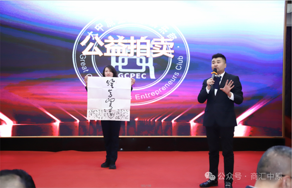 公益拍卖环节,刘昱旻、宁明义、张楠楠、刘炎鑫等老师拿出自己的作品在现场进行拍卖,本次拍卖所得全部捐献给河南省残疾人福利基金会·残疾人助力团。现场企业家纷纷参与进来,希望可以为慈善事业奉献自己的一份力量。
